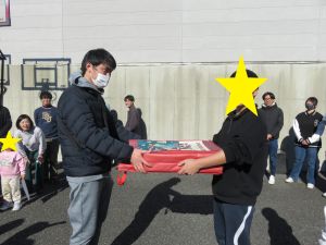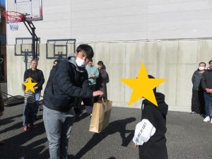 昼食のお弁当も用意してくださり、冬の日差しを感じ、みんなでワイワイと食べることができました。また、屋外用の大きな時計をご寄贈いただき、職員一同大変感謝しています。