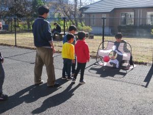 例年、神戸製鋼の皆さまによる児童交流や子どもたちの自転車の修理をしていただいています。また、子供の家に必要な物品等ご寄贈いただいています。今年も児童との交流をメインにお願いしました。主に幼児さんや小学生と一緒に、プラスチックバットとゴムボールを使った野球や、サッカー、バドミントン、鬼ごっこ等をしていただきました!子ども達も終始笑顔で楽しんでいた姿が印象的でした。神戸製鋼の皆さまも寒空の中でも、汗をかき子ども達と交流してくださる姿に感謝の気持ちでいっぱいになりました。