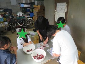 本日は今年度最初の農園体験活動になります・・・が生憎の天気。弱い雨がパラパラと降る中、出発しました。昨年度同様、伊勢原市の「まるひろ園」へ伺わせていただきました。現地に到着すると雨はあがりましたが、畑作業は難しいため、まるひろ園で収穫された「ローゼル」を使ってみんなでソース作りをしました。