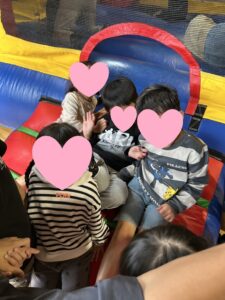 さらに、基地からお城の形をしたふわふわドームをお借りいただき、子どもたちは大はしゃぎで遊んでいました。次回はクリスマスにイルミネーションを飾ってくださることも約束していただき、今後の交流がますます楽しみです。今回の出会いを大切にし、これからも交流を深めていきたいと思います。