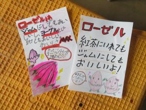 その後は「ローゼル」のポップ作り(店頭に並べる際に使用)。こちらも丁寧にしっかりと書き上げることができました。まるひろ園の方も「ローゼルのポップは少ないからとっても助かった」と仰っていました。来月もよろしくお願いします!