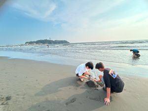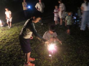 夜は手持ち花火。火を怖がる低学年の子には高学年の子が寄り添い、手を取りながら一緒に楽しむ姿が印象的でした。最後には、学童のお兄さんお姉さんが幼児の手を引いて歩いたり、一緒に遊ぶ姿も見られ、年齢を越えた温かい関わりが自然に生まれていました。