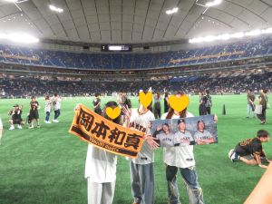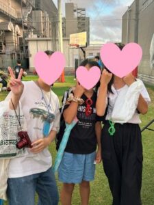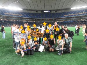 ビンゴ大会ではジャイアンツのグッズがもらえ、当たった子どもたちは身に着けて写真を撮ったり、賢様からもプレゼントをいただき、さらに応援に熱が入ったりと大盛り上がりでした。試合後には実際にグラウンドに降りる機会もあり、外野の芝に触れ、選手と同じ目線から観客席を見上げる体験は、子どもたちにとって大きな感動となりました。