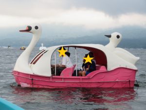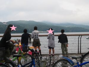 前日から「早く明日にならないかな」とワクワクしていた様子が印象的でした。1日目は、水族館・スワンボート・サイクリングの3つのアクティビティに分かれて行動。水族館組は「森の中の水族館」へ向かい、水槽に顔を近づけて泳ぐ大きな魚を興味津々で見つめ、「わー!」と歓声を上げていました。幼児さんたちは普段見られない光景に目を輝かせ、広場では大きな遊具を走り回って楽しんでいました。スワンボート組は、のどかな湖に浮かぶ白いスワンに乗り、魚に餌をあげながら笑顔いっぱい。サイクリング組は山中湖周辺の自然を満喫。