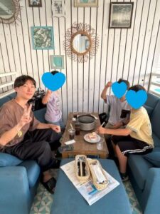 最高のロケーションでBBQやスイカ割りなど、夏の風物詩を存分に味わうことができました。BBQはエビやカニなど海鮮も豊富で、子どもたちはBBQで食べる海鮮のおいしさに感動したのか、黙々と食べている様子が印象に残っています。井上様、ハーバーテラス様ご招待いただき本当にありがとうございました。